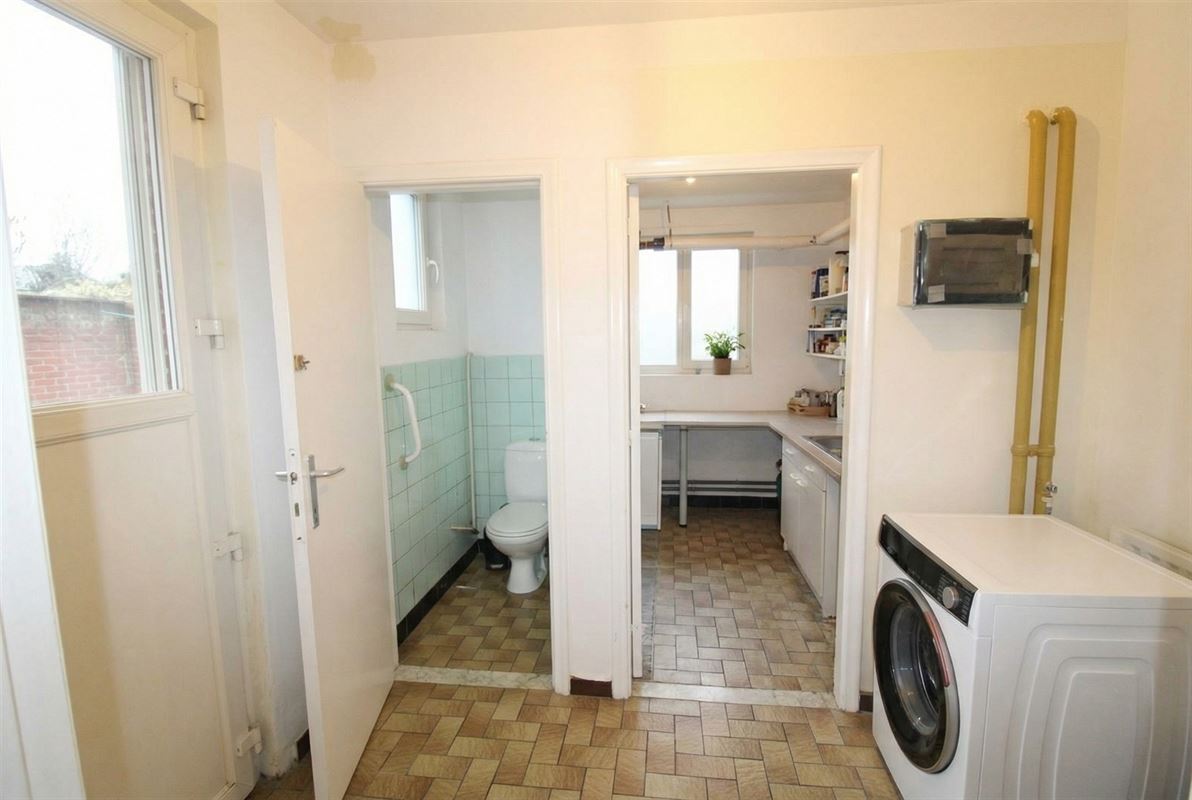 OPEN HUIS ZATERDAG 14 MAART van 13u tot 14u ! Deze ruime gezinswoning heeft o.a. als grote troeven de topligging aan de stadsrand, de mogelijkheid om 4 tot 5 slaapkamers te creëren en de parkeerplaatsen! De ruime parking voor het huis biedt plaats aan 2 en misschien wel 3 (kleinere) auto's. De zij-ingang is ook zeer handig voor vuilniscontainers en fietsen. De L-vormige woonkamer is een zeer aangename ruimte van ca 40 m². De keuken is vernieuwd en voorzien van Bosh toestellen (gaskookplaat, microgolfoven, oven, koelkast, diepvriezer en vaatwasser). Er is een handige wasplaats en berging aansluitend aan de keuken. Op de verdieping zijn er 3 slaapkamers en een douchekamer. De tweede verdieping is bereikbaar via een vaste trap en biedt vele mogelijkheden: hier kan gemakkelijk een masterbedroom met (tweede) badkamer gecreëerd worden bv. De vloeren werden op verschillende plaatsen vernieuwd (laminaat) en het pleisterwerk is tevens vernieuwd. Buiten kan u genieten op het zuidwest gerichte terras en van de westgerichte tuin. Oppervlakte conform EPC - De elektrische installatie is conform! Het hoofddak werd pas geïsoleerd. Mits beperkte aanpassingen, nl plat dak isoleren en plaatsen condensatieketel bekomt u een C label ! De ligging is zeer gunstig: op wandelafstand van het centrum en de ring (stadsrand). Je zit zo in het groen en bent zo op de markt. Niet gelegen in een overstromingsgebied. P-score: B, G-score: A. Geen erfgoed. Informatieplicht in aanvraag.